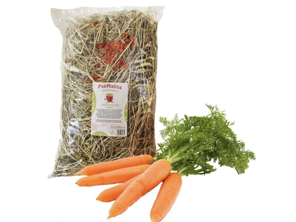 Zloženie: 95% lúčne seno, 5% sušená mrkva